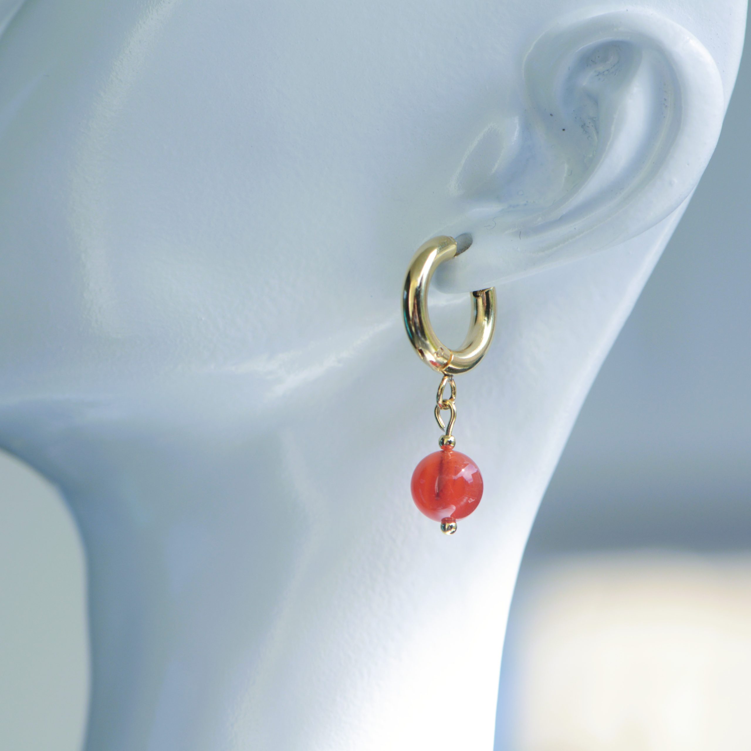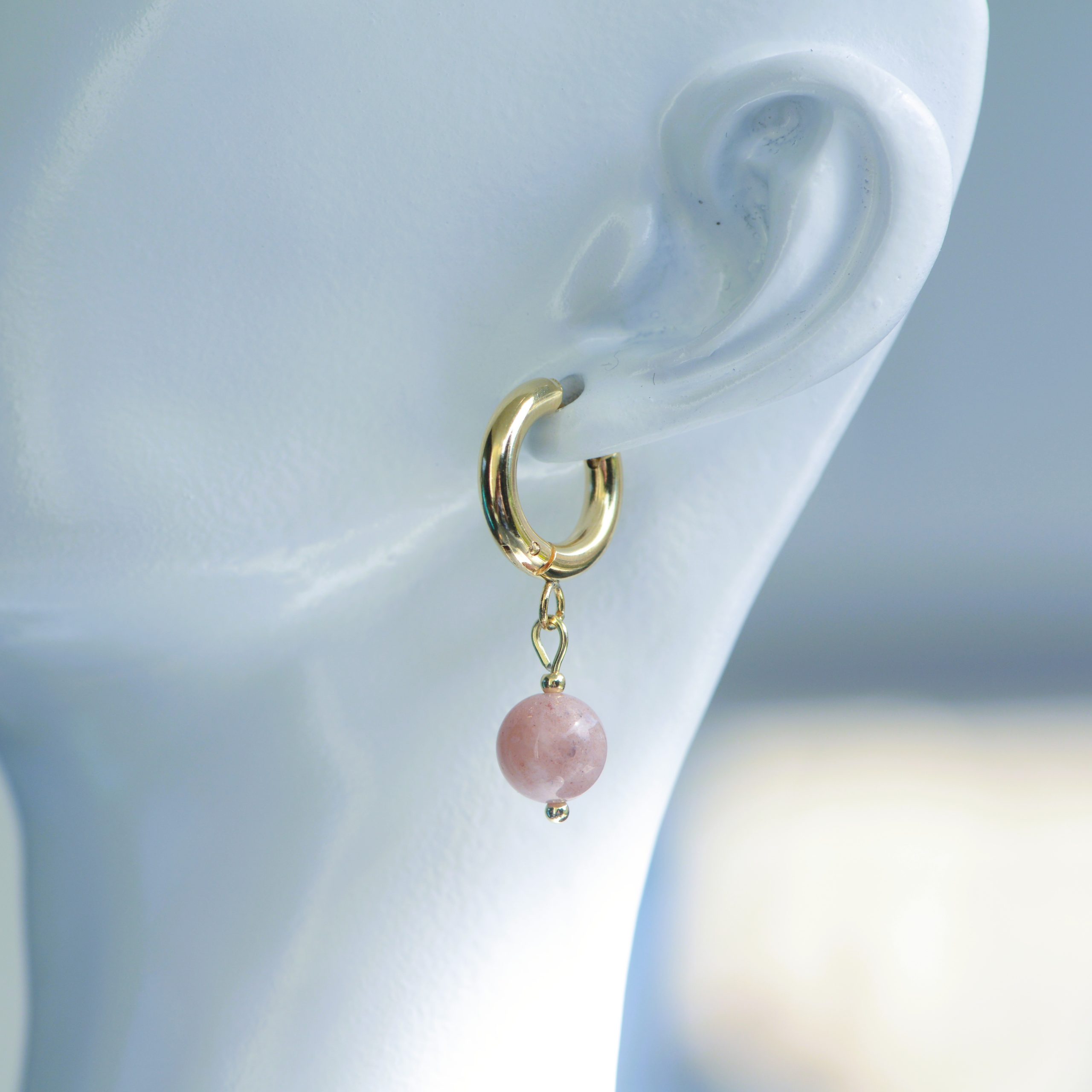 Orecchino a cerchio in acciaio inossidabile dorato lucido con ciondolo pendente composto da una pietra naturale (diverse varianti), dal fascino elegante e senza tempo❤️🔥